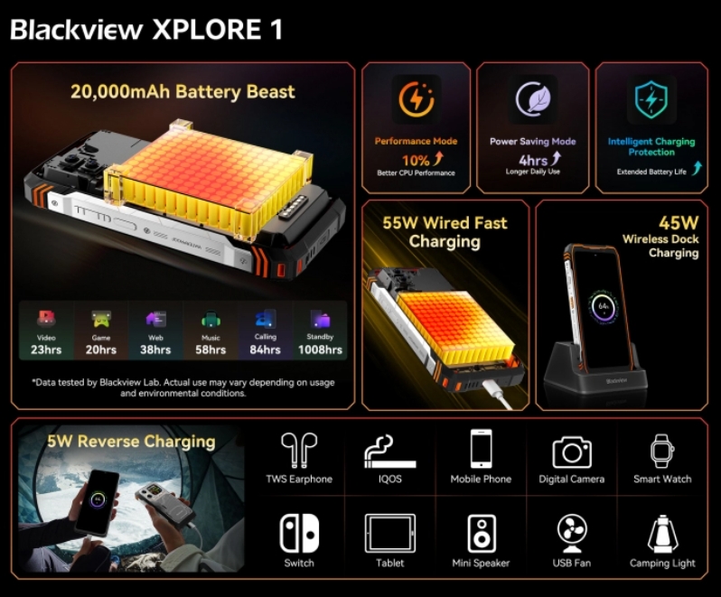 الإعلان عن هاتف Blackview XPLORE 1 – يدعم شبكات الجيل الخامس 5G وميزات الذكاء الاصطناعي، وبطارية بسعة 20000 مللي أمبير في الساعة