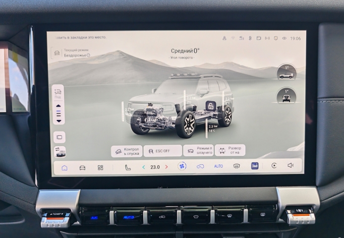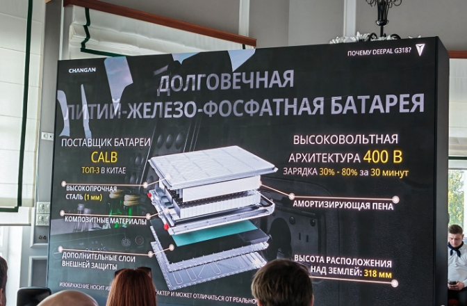 على الرغم من محاولة مكتب الشركة في روسيا تخفيض السعر النهائي لسيارة الدفع الرباعي لعملائنا، إلا أنهم لم يبخلوا على البطارية. لذا، تتوفر سيارة ديبال G318 حصريًا ببطارية سعة 35 كيلوواط/ساعة، على الرغم من توفر نسخة بسعة 19 كيلوواط/ساعة في الصين. تُصنّع بطارية الجر من قبل شركة CALB Group Company Limited الصينية، وهي حاليًا ثالث أكبر مورد لبطاريات السيارات الكهربائية في الصين، وإحدى أفضل عشر شركات عالميًا في هذا القطاع. تتمتع البطارية بحماية كاملة من التلف وارتفاع درجة الحرارة والحريق، وتقع أسفل هيكل ديبال G318، فوق مستوى الخلوص الأرضي (318 مم). على الرغم من موقع البطارية الكلاسيكي وتوزيع الوزن الأمثل، وجدتُ أن قيادة السيارة أقل متعة من بعض منافسيها. لكن قد أكون مخطئًا، لأن الاختبار كان قصيرًا جدًا، وأثناء القيادة، كنتُ أُجري تعديلات مستمرة على إعدادات نظام التعليق الهوائي Magic Carpet. قد يكون الوضع مريحًا للغاية في وضع “الراحة”، لكن التحكم في السيارة يصبح غير دقيق للغاية، وهناك احتمال أن يعاني بعض الأشخاص من دوار الحركة مع هذا الإعداد.
