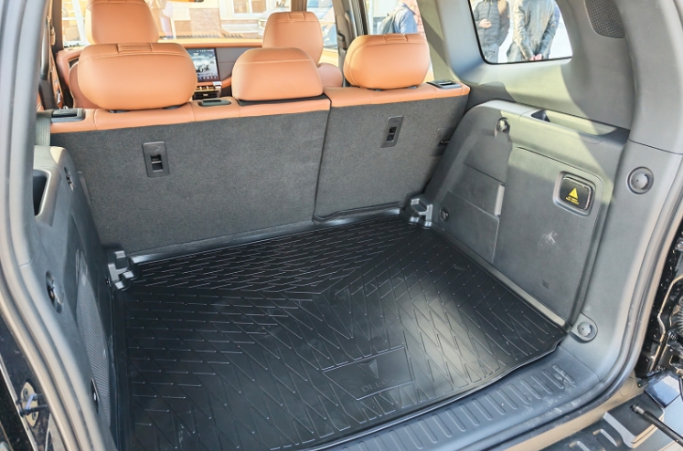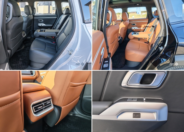 مقصورة السيارة واسعة؛ بطولي البالغ 187 سم، لا أجد أي صعوبة في الجلوس خلفي. يمكن طي مسند الظهر الأوسط ليصبح مسند ذراع مركزي عريض، ويوجد فتحتان منفصلتان للتهوية في المنتصف، كما توجد أزرار تدفئة المقاعد على ألواح الأبواب. ومن المثير للاهتمام أن الشركة المصنعة وضعت منافذ USB هناك أيضًا، مع العلم أن منفذ الباب الأيسر من نوع USB-A، بينما المنفذ الأيمن من نوع USB-C.