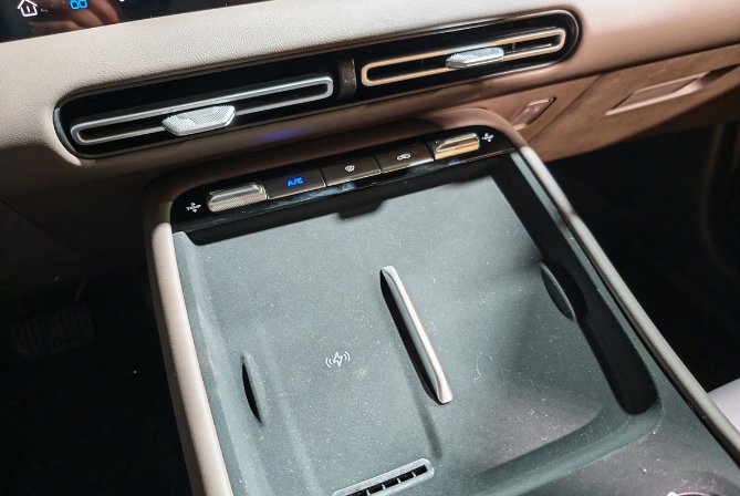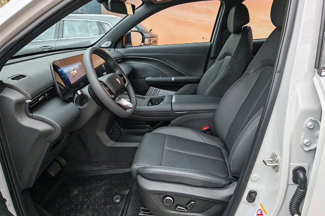 تم تحديث التصميم الداخلي ليصبح أكثر رحابةً وتعقيدًا من الناحية المعمارية، مع استخدام مواد عالية الجودة في جميع أنحاء المساحات الظاهرة. تتميز ألواح الأبواب بمساند أذرع عائمة ومقابض أبواب غير تقليدية وجذابة. كما أن عجلة القيادة الجديدة، بشكلها المألوف وقاعدتها الأقصر قليلاً، لافتة للنظر. علاوة على ذلك، فهي مزودة الآن بأزرار تحكم كبيرة وسهلة الاستخدام. تم دمج لوحة العدادات الرقمية مقاس 12.8 بوصة مع شاشة عرض وسائط متعددة تعمل باللمس مقاس 14.6 بوصة، بينما تم نقل أزرار التحكم الرئيسية لنظام التحكم في المناخ ثنائي المناطق إلى الأسفل. كما تم توفير مساحة على الكونسول الوسطي بنقل ذراع ناقل الحركة الأوتوماتيكي أسفل عجلة القيادة، مما يسمح الآن بوضع قاعدة شحن سهلة الوصول لهاتفين ذكيين، بينما تحتوي عجلة القيادة اليمنى على شاحن سريع بقوة 50 واط مع نظام تبريد نشط.
