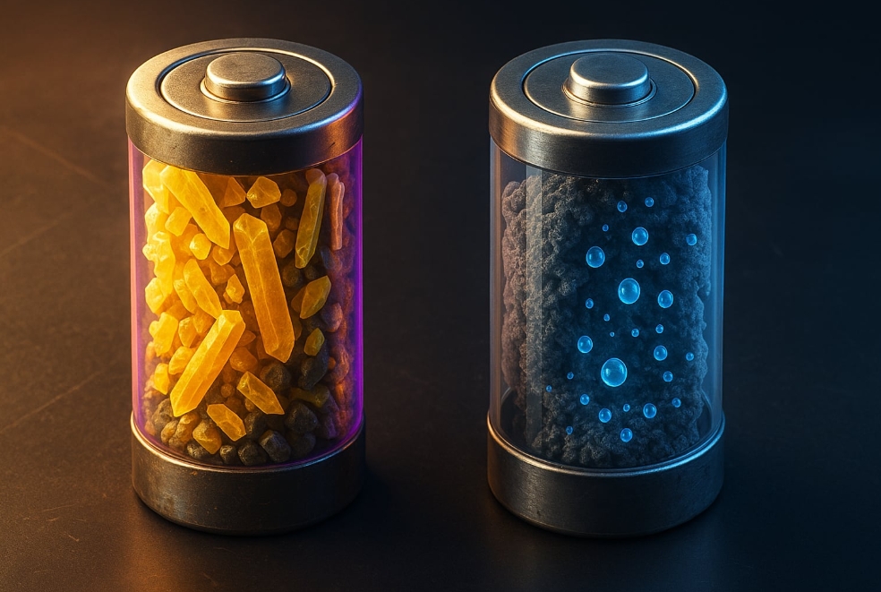 تَعِد بطاريات الليثيوم-الكبريت (Li-S) بأن تكون رائدة في كثافة الطاقة – نظريًا تصل إلى 600 واط/كجم، أي ضعف أفضل حلول أيونات الليثيوم. فهي أقل تكلفة في الإنتاج (الكبريت منتج ثانوي لتكرير النفط) وأكثر صداقة للبيئة نظرًا لغياب الكوبالت. إلا أن هناك مشكلة خطيرة: ما يُسمى “تأثير المكوك”. تحدث هذه الظاهرة عندما تنتقل جزيئات الكبريت بين الأنود والكاثود، مما يُؤدي إلى تدهور البطارية بسرعة وتقليل عدد دورات الشحن.