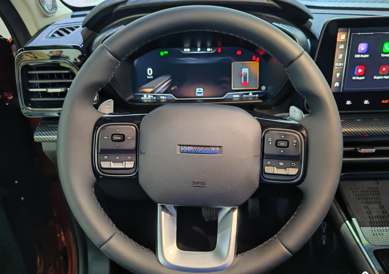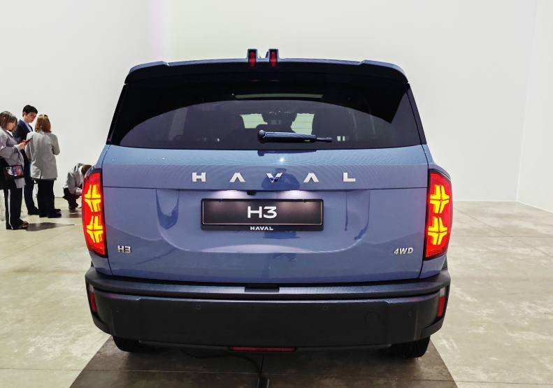 إذن، أول ما يجدر ذكره هو أن هافال H3 فقدت أبرز سماتها المميزة في عام 2026، تلك التي كانت محط إعجاب البعض وانتقاد البعض الآخر: “الغطاء الخلفي” الانسيابي على الباب الخلفي. نعم، برأيي، فقدت H3 بعضًا من جاذبيتها وتميزها بدونه، لكنها أصبحت أيضًا أكثر راحة في الاستخدام. بإزالة “الغطاء الخلفي”، زادت الشركة المصنعة مساحة الزجاج الخلفي وأضافت ماسحة للزجاج الأمامي، وهو ما سيرضي الكثيرين على الأرجح، حيث لم يكن الغطاء يحمي الزجاج الصغير من الأوساخ بشكل كافٍ. الآن، كل شيء مُصمم بالطريقة التقليدية، بالإضافة إلى أن الزجاج الأمامي الجديد الأكبر حجمًا يُحسّن الرؤية الخلفية، وفي الأحوال الجوية السيئة، تُنظفه ماسحة صغيرة بسهولة. علاوة على ذلك، نقل مهندسو الشركة حامل لوحة الترخيص من المصد إلى الباب الخلفي لمنع تركه فارغًا. أيضًا، وفقًا لممثلي العلامة التجارية، تم تحسين قبضة مقبض الباب الخلفي، لكنني لم ألحظ فرقًا كبيرًا. كما طرأ تغيير طفيف على المصد الخلفي، ولكن تم الحفاظ على المساحة المخصصة لتركيب قضيب السحب.