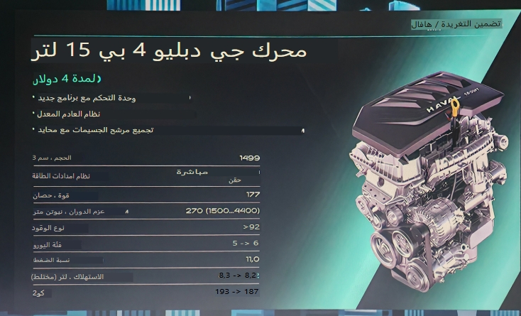 خضعت حجرة المحرك لتغييرات، ولكن فقط في نسخ الدفع الرباعي من هافال H3. حصلت هذه الأخيرة على محرك بنزين توربيني GW4B15L مُحسّن، مزود بوحدة تحكم جديدة وبرمجيات مُحدّثة ونظام عادم مُعدّل. يُنتج هذا المحرك سعة 1.5 لتر قوة 177 حصانًا وعزم دوران 270 نيوتن متر، ويتوافق مع معايير يورو 6 (يورو 5 سابقًا). ولا يزال مُقترنًا بناقل حركة أوتوماتيكي بسبع سرعات مع قابضين رطبين. أما طرازات الدفع الأمامي، فتحتفظ بمحرك سعة 1.5 لتر يُنتج قوة 143 حصانًا وعزم دوران 210 نيوتن متر.