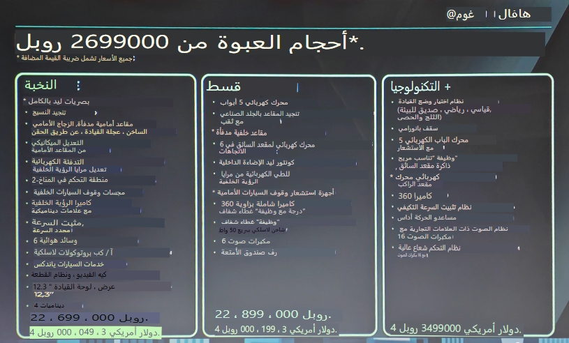 لم تُؤدِّ بعض التغييرات في فئات سيارة هافال H3 المُحدَّثة إلى زيادة سعر طراز عام 2026، بل خفَّضت سعر الفئة الأساسية بمقدار 50,000 روبل، ليصبح سعرها الأساسي 2,699,000 روبل. أما فئة Tech+ الأعلى تجهيزًا ذات الدفع الرباعي، فما زال سعرها 3,499,000 روبل.