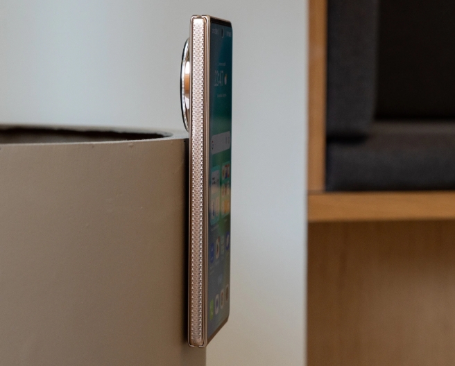 يتجاوز سُمك الهيكل نصف حجم الهاتف . وقد ازداد حجمه بشكل ملحوظ مقارنةً بهاتف Honor Magic V3. لكن هذا أمرٌ لا مفر منه عند محاولة جعل الهيكل “الصدفي” أنحف والكاميرات أكثر برودة. سنتحدث عن ذلك لاحقًا.