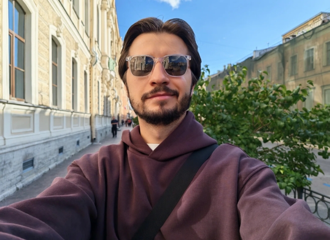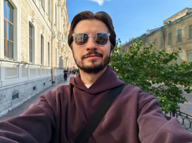 ميزة الهواتف القابلة للطي هي إمكانية تصوير نفسك بالكاميرا الرئيسية. اقلب هاتفك، واضغط على زر خاص، وسترى نفسك على الشاشة الخارجية. بالطبع، تصوير نفسك بهذه الطريقة أقل ملاءمة، ومن الأفضل عدم القيام بذلك أثناء الجري أو ركوب الدراجة. لكنك ستحصل على أعلى مستوى من التفاصيل، وضبابية خلفية طبيعية، وإمكانية تصوير نفسك بعدسة واسعة للغاية. وحتى مع التقريب (ولكن لماذا؟).