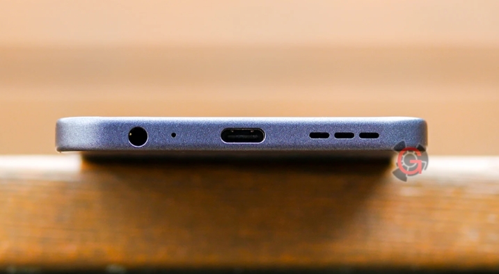 في الحافة السفلية، بالإضافة إلى منفذ سماعة الرأس 3.5 ملم النادر حاليًا، يوجد منفذ USB من النوع C ومكبر صوت متعدد الوسائط. عند توصيله بسماعة الأذن، يُنتج صوتًا ستيريو، مع أن مكبر الصوت العلوي، كما هو متوقع، أقل جودةً ومستوى صوت من مكبر الصوت الرئيسي. عمومًا، يُعدّ صوت الجهاز مقبولًا بالنسبة لسعره المنخفض.