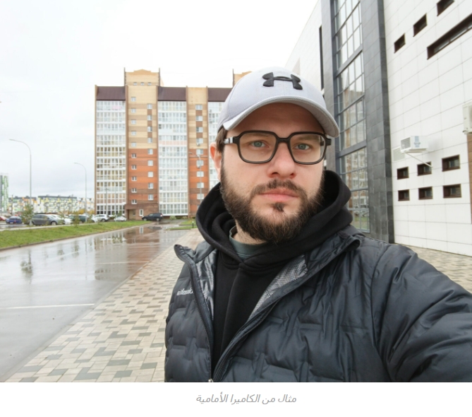 الكاميرا الأمامية ممتازة أيضاً. فهي بدقة 13 ميجابكسل، وقادرة على التقاط صور سيلفي عادية وصور بورتريه، مما يعني أنها تتميز بتأثير ضبابي خفيف في الخلفية. وتؤدي وظيفتها بشكل ممتاز، حيث تحافظ على تفاصيل البشرة والعينين والشعر. لا يوجد أي تشويش على الإطلاق.