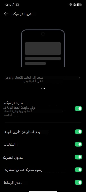 تتحول الكاميرا الأمامية البارزة من منتصف الشاشة إلى شريط إشعارات ديناميكي عملي، يعرض إشعارات مثل بدء المؤقت، وتسجيل الصوت، وتشغيل الموسيقى، وما إلى ذلك. يشبه هذا تمامًا شريط بصمة الوجه في أجهزة آيفون.