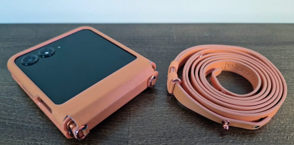 يأتي هاتف RAZR مع غطاء متوافق (تشترط سامسونج شراؤه بشكل منفصل). في بعض الأسواق، قد يأتي الهاتف الذكي مزودًا ليس فقط بكابل شحن USB-C، بل أيضًا بشاحن وحبل تثبيت، يمكن تثبيتهما بالغطاء باستخدام مشابك معدنية. لم يأتي هاتفي مع شاحن، ولكنه جاء مع حبل تثبيت مطابق للون الغطاء. جميعنا ندرك أن التسويق مدفوع بالحاجة إلى زيادة مبيعات الملحقات (حيث تكون هوامش الربح مربحة للغاية لكل من الشركة المصنعة وتجار التجزئة). ولكن بالتأكيد يمكنهم على الأقل إضافة غطاء لجهاز سعره 1000 دولار أو أكثر، إذا كان مصنع هاتف ذكي بسعر 700 دولار يوفره.