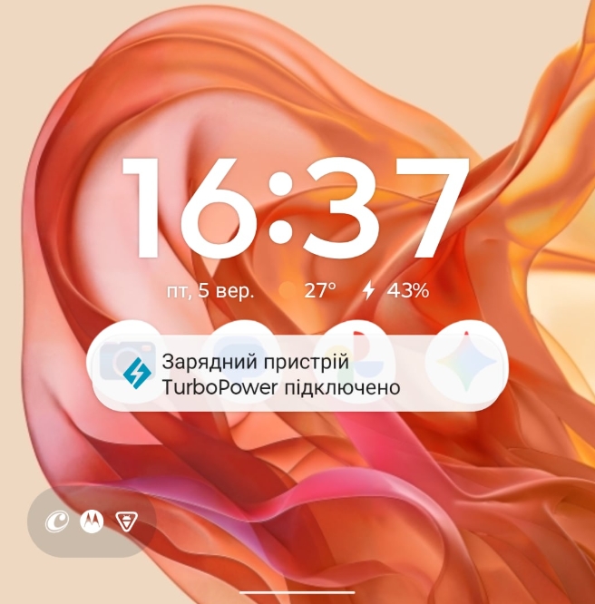لقطة شاشة لشاشة هاتف RAZR 50 الخارجية أثناء الشحن السريع