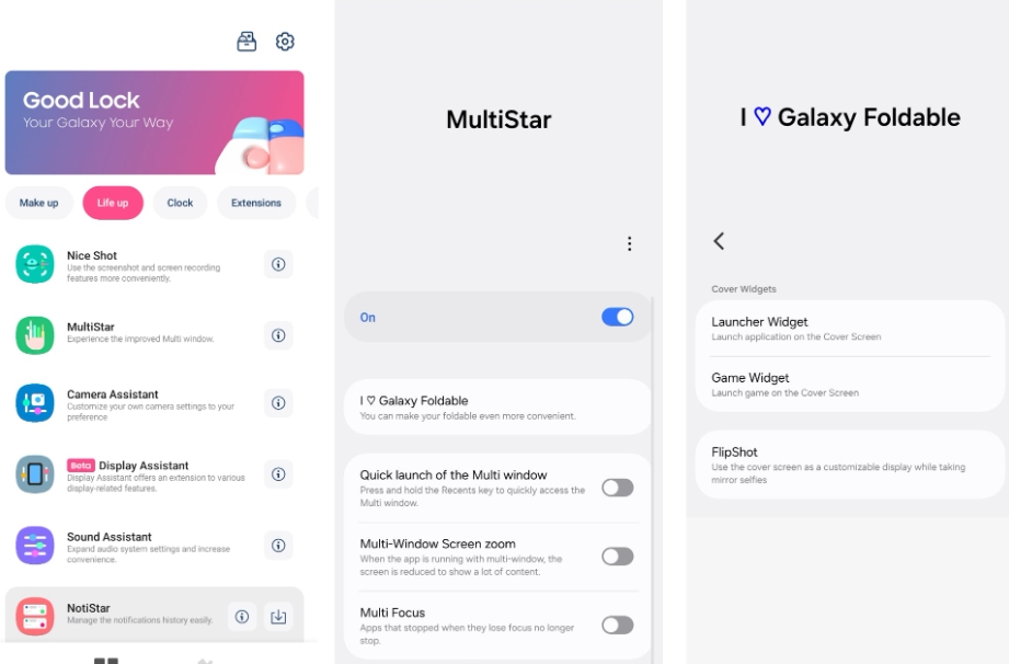 تجدر الإشارة إلى أن مستخدمي Galaxy Flip يمكنهم أيضًا استخدام الألعاب على شاشة الغلاف. ومع ذلك، يتطلب ذلك تثبيت تطبيق منفصل يُسمى Good Lock (لم يُحدد بعد). بعد ذلك، ثبّت إضافة MultiStar. ثم فعّل قسم “I ❤️ Galaxy Foldable”. بعد ذلك، أضف أداة ألعاب (يجب تنزيلها أيضًا) إلى شاشة الغلاف. هذه الميزة معقدة جدًا بالنسبة للمستهلك العادي، لذا يصعب استخدامها على نطاق واسع. في الوقت نفسه، توفر هواتف موتورولا الذكية هذه الميزة فورًا. لا يزال سبب عدم دمج سامسونج لهذه الميزة في نظامها لترويج الهواتف الذكية القابلة للطي غامضًا.