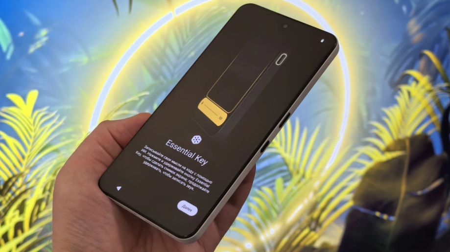 على الجانب الأيمن من الجهاز، يوجد مفتاح أساسي إضافي، ظهر لأول مرة في سلسلة هواتف (3a). بالضغط المطول على الشاشة الرئيسية، يبدأ تسجيل ونسخ الملاحظات الصوتية، وعند تشغيل أي تطبيق، يتم التقاط لقطة شاشة للمذكرة الصوتية. تُحفظ جميع التسجيلات في مساحة Essential Space، والتي يمكن الوصول إليها بالضغط المزدوج على المفتاح.