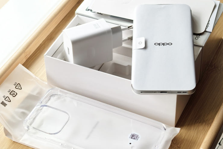 إطار من الألومنيوم غير اللامع وزجاج على اللوحة الخلفية. خلال العرض التقديمي، ذكرت أوبو أن النمط على الزجاج يتكون من 12 طبقة. ولجعل اللوحة تبدو حريرية الملمس، تم دمج جزيئات بلاستيكية فيها باستخدام تقنية الحفر النانوي. الزجاج مريح جدًا للمس.
