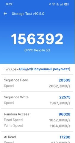 بالمعايير الحديثة، يتمتع الهاتف بأداء متوسط. إذا سجلت الهواتف الرائدة 2.8 مليون نقطة في اختبار AnTuTu v10، فإن Oppo Reno14 يسجل 1.4 مليون نقطة. هذه نتيجة جيدة. اجتاز الهاتف جميع الاختبارات بامتياز – نتيجة عالية، وثبات تشغيل جيد. تحت الحمل، ترتفع درجة حرارة الجهاز، ولكن ليس بشكل مفرط. بعد اختبار الإجهاد، ذهبتُ خصيصًا إلى AnTuTu v10 لمعرفة درجة حرارة البطارية – 43.6 درجة. بالمناسبة، نشرنا مقالًا عن تأثير الحرارة على البطارية . اقرأه.